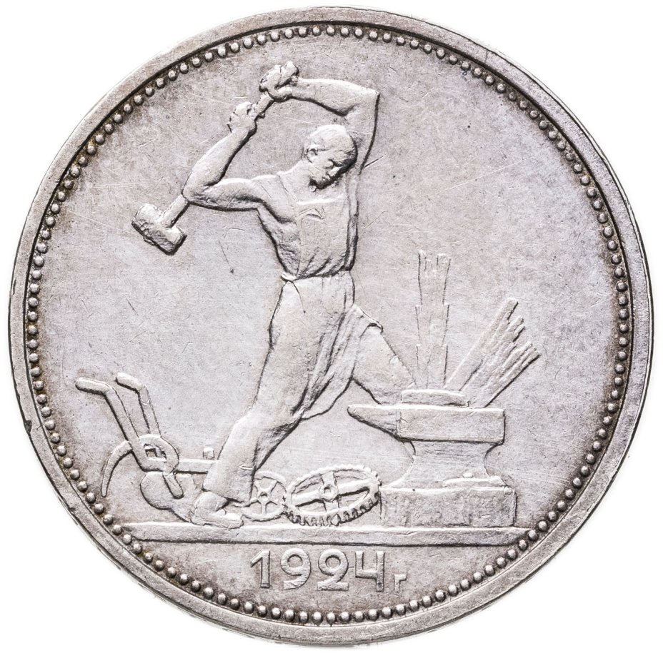Штемпель А, фигура рабочего и его голова меньшего размера, наковальня отодвинута от точечного ободка.