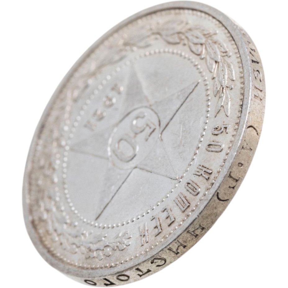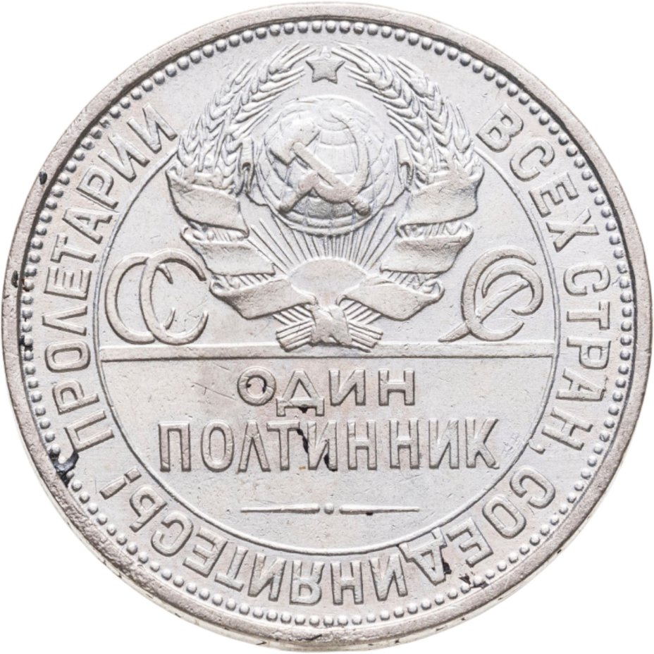 Советские 50 копеек (серебро 900 пробы) чеканились с 1924 по 1927 годы номиналом «один полтинник». Молодая Страна Советов решила понемногу отказываться от «старорежимных» названий, поэтому на аверсе отчеканили русскую старинную версию номинала. Примечательны полтинники 1924-1927 тем, что стали последними советскими монетами 50 копеек серебром — следующий появление монет этого же номинала произошел уже в 1961 году и чеканка велась из недрагоценного мельхиора.