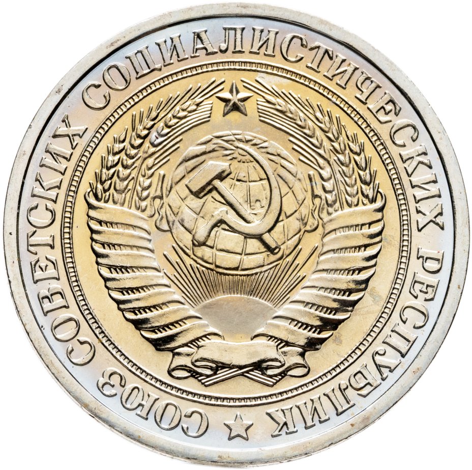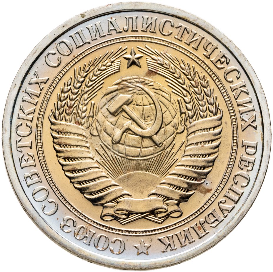 - Номинал над венком: по бокам колосья пшеницы, переходящие в дубовые ветви, которые держит ракушка. Такими монеты остаются до 1991 года, когда СССР распался.
