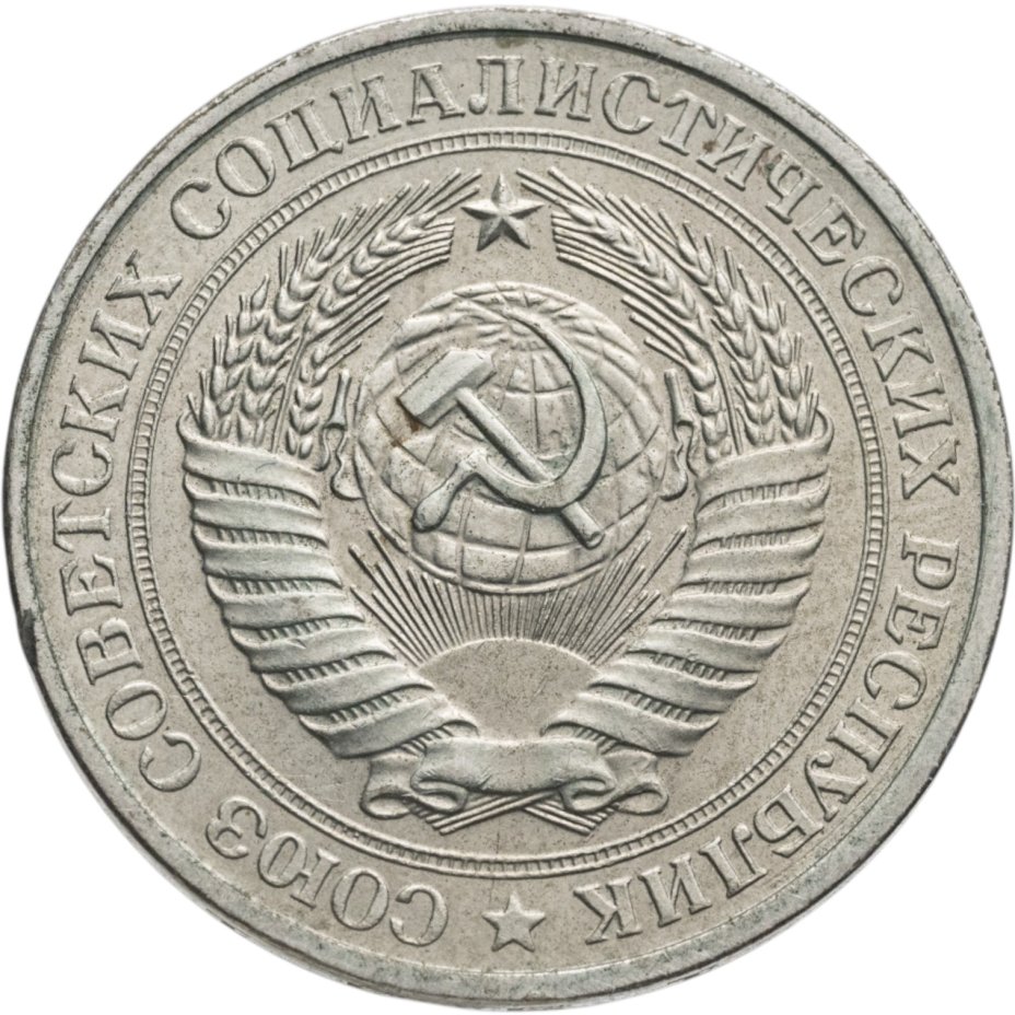 - Номинал над венком: по бокам колосья пшеницы, переходящие в дубовые ветви, которые держит ракушка. Такими монеты остаются до 1991 года, когда СССР распался.