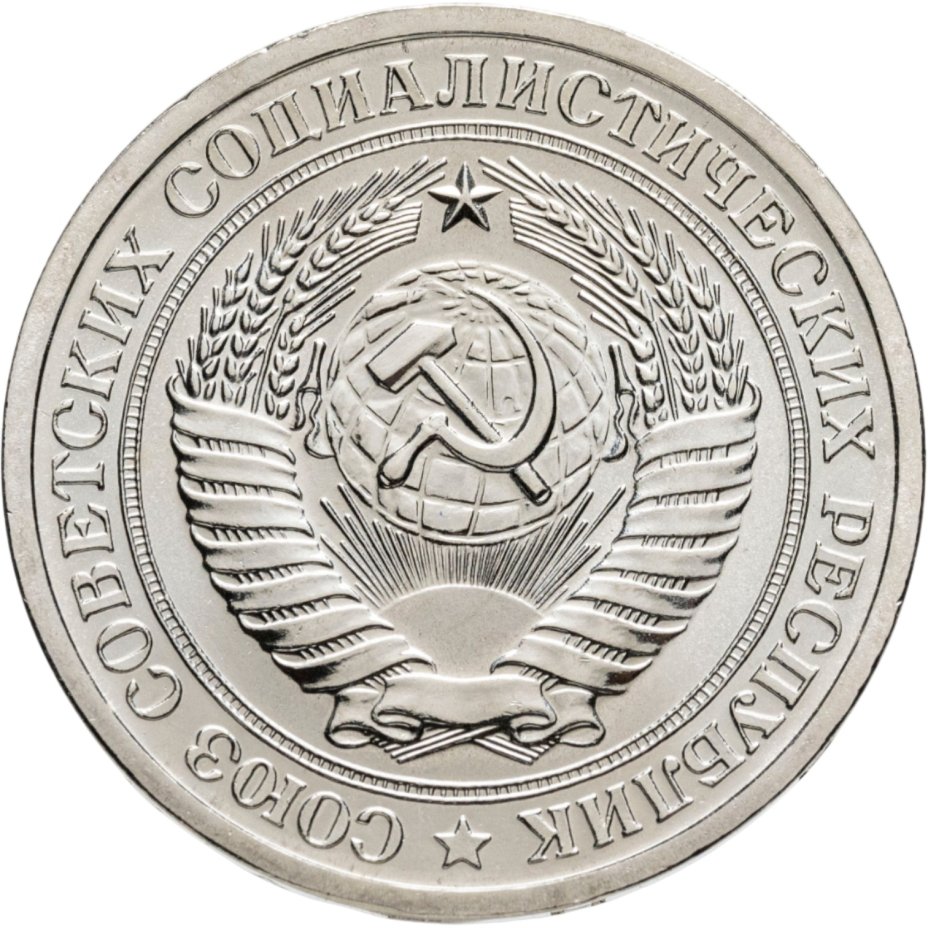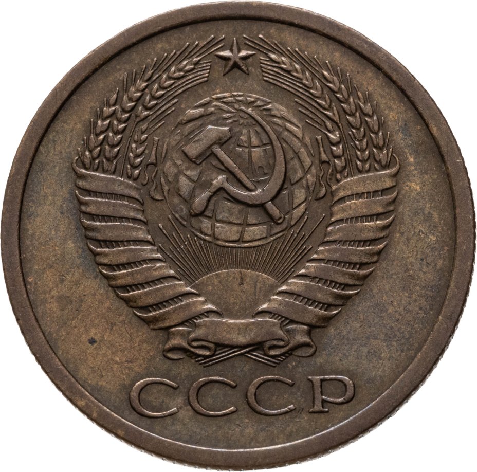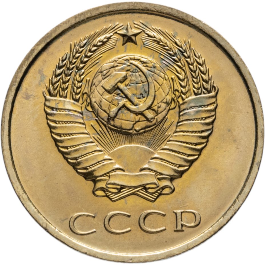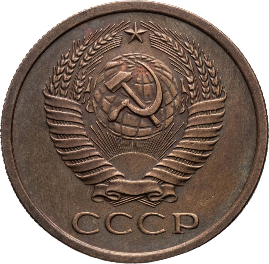 - Номинал над венком: по бокам колосья пшеницы, переходящие в дубовые ветви, которые держит ракушка. Такими монеты остаются до 1991 года, когда СССР распался.