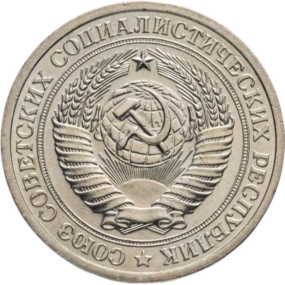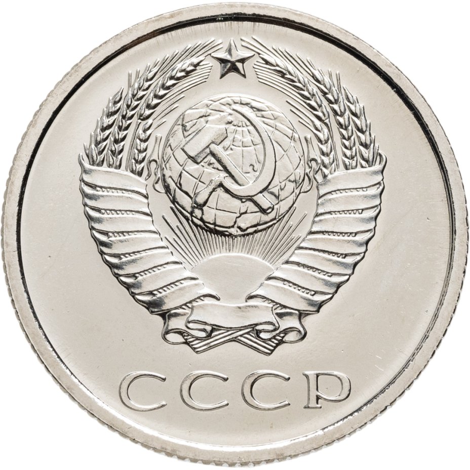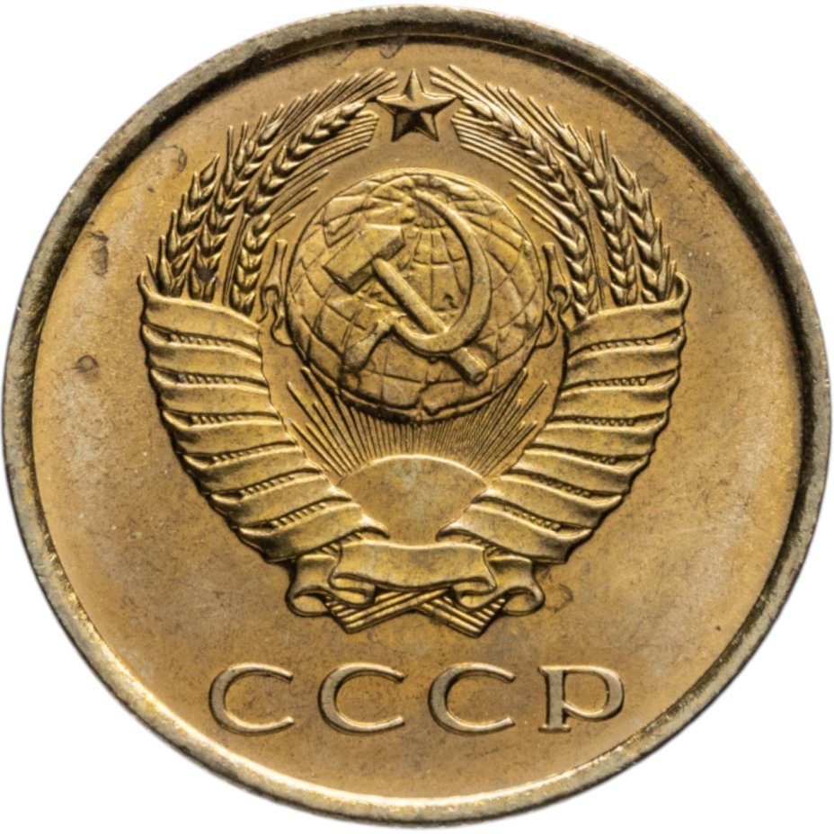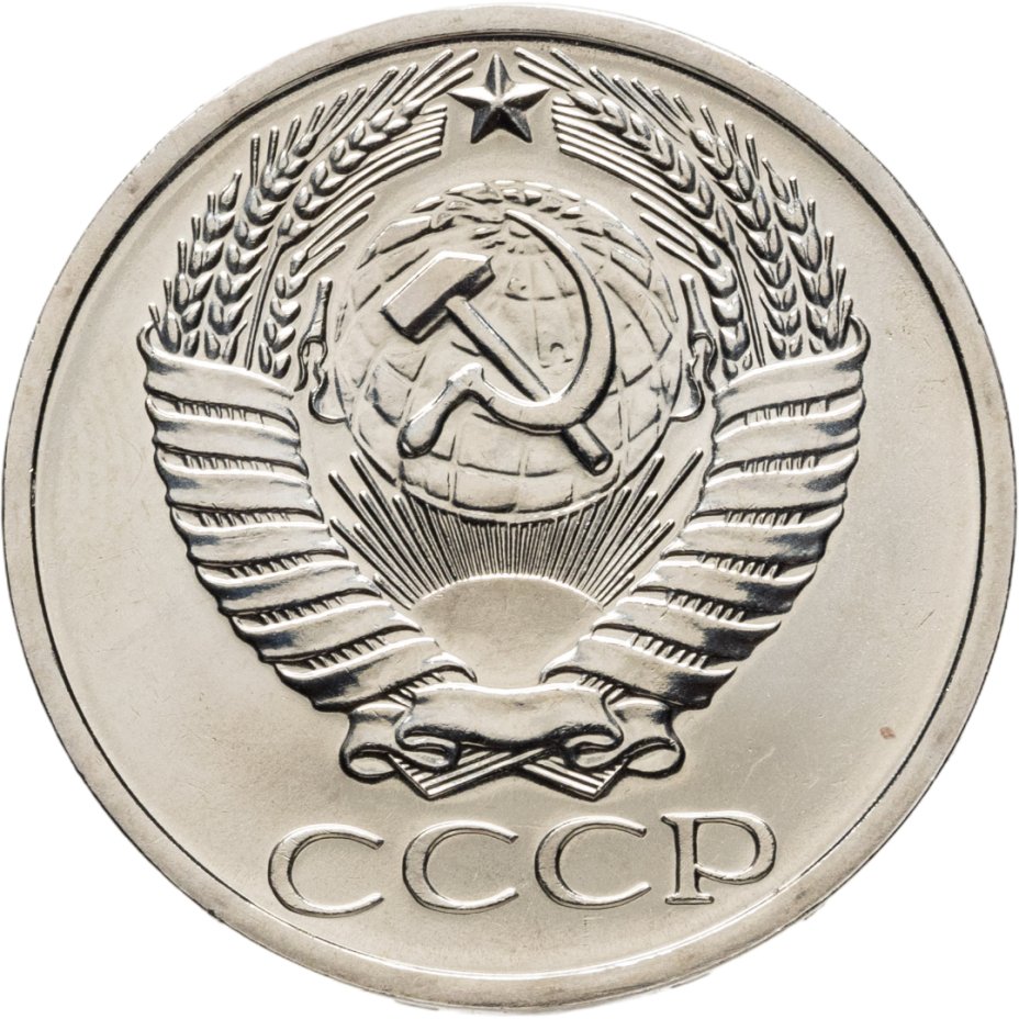 - Номинал над венком: по бокам колосья пшеницы, переходящие в дубовые ветви, которые держит ракушка. Такими монеты остаются до 1991 года, когда СССР распался.
