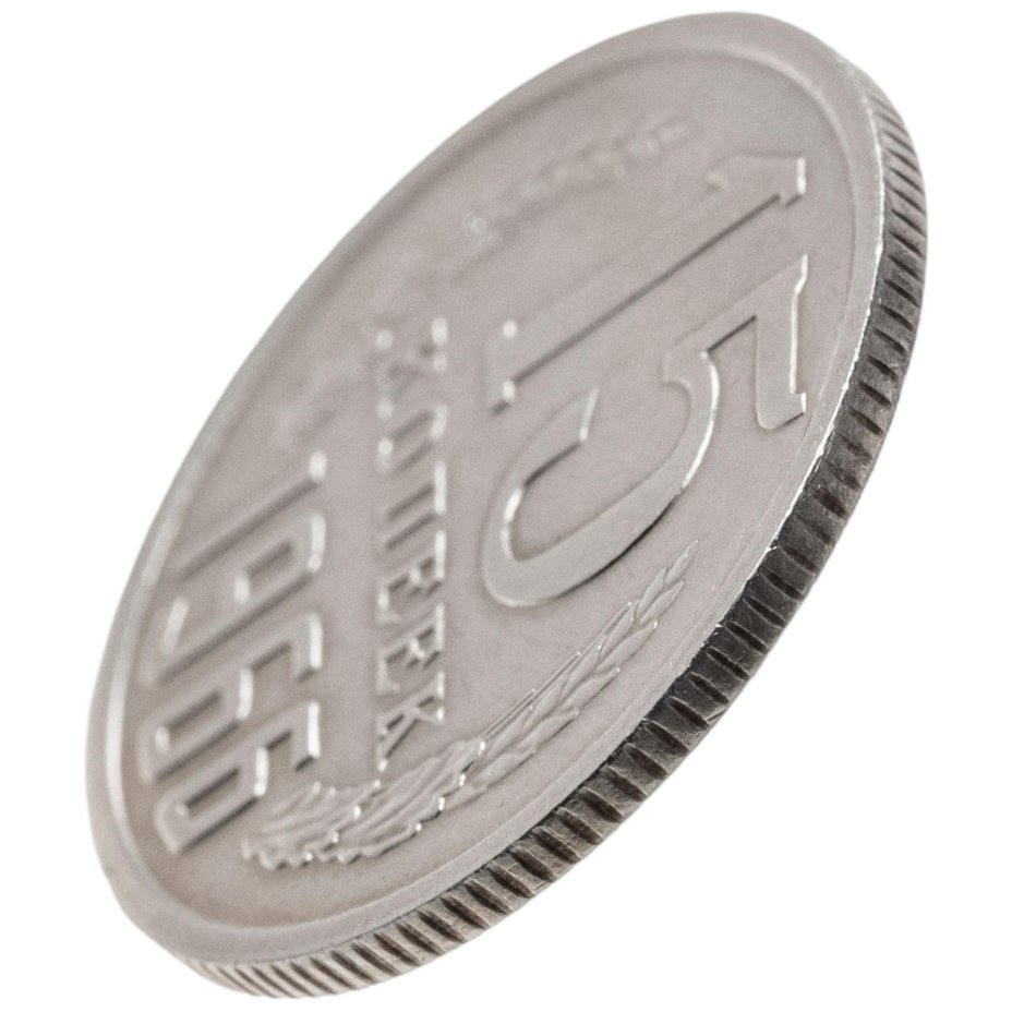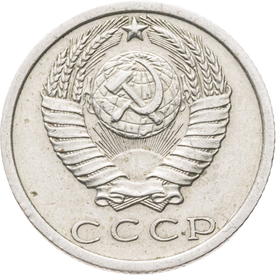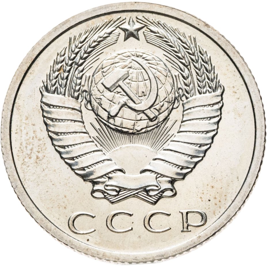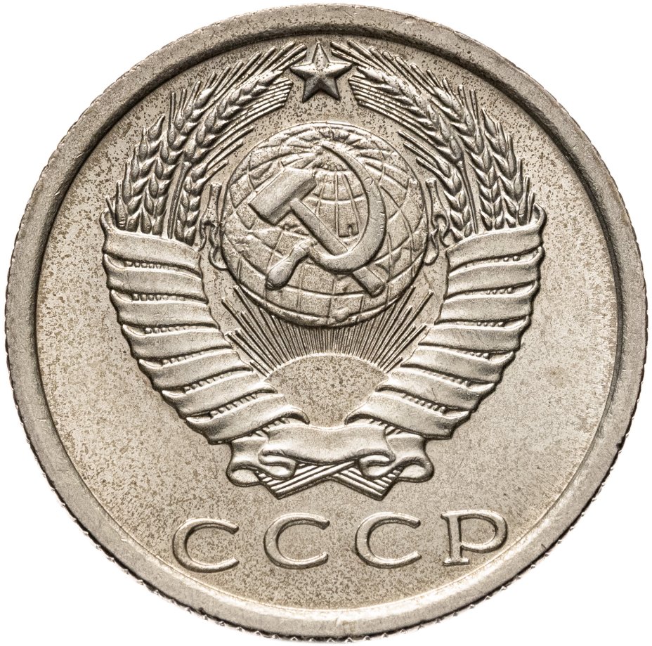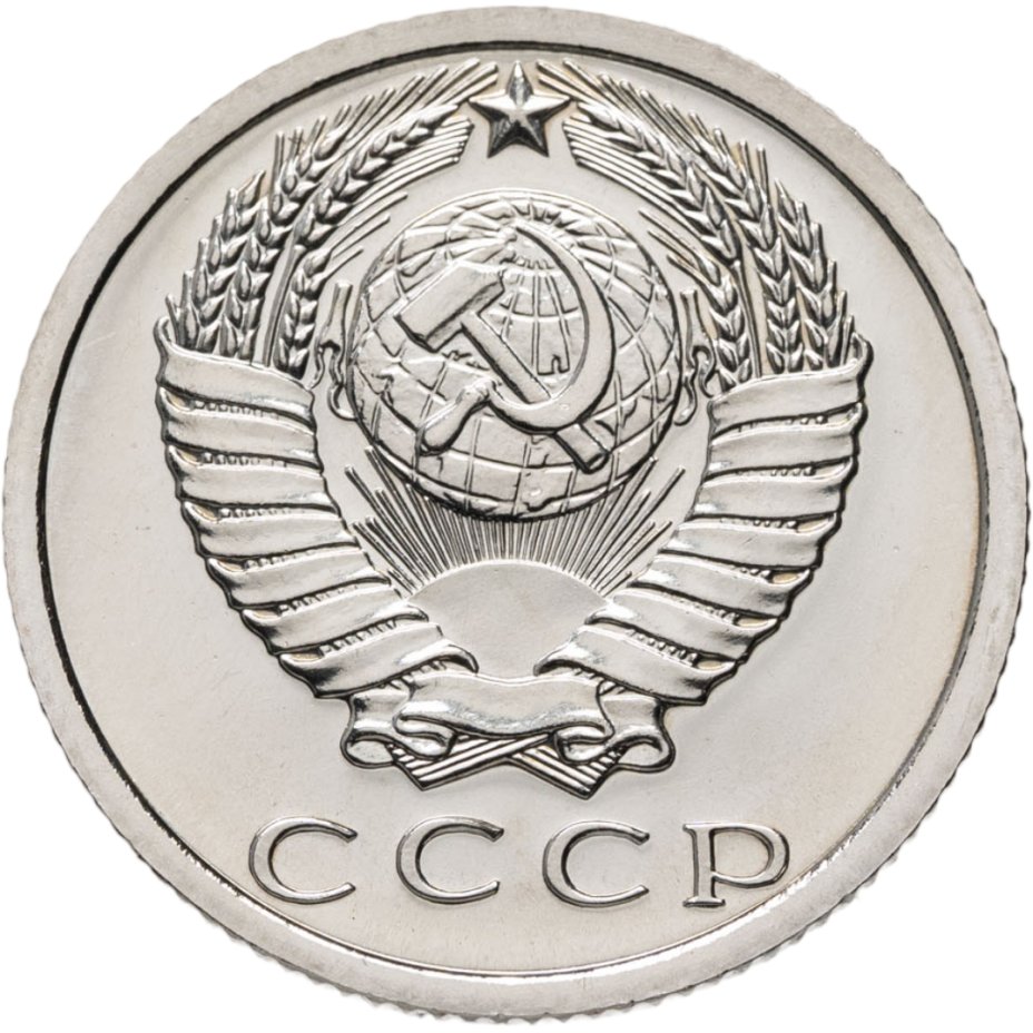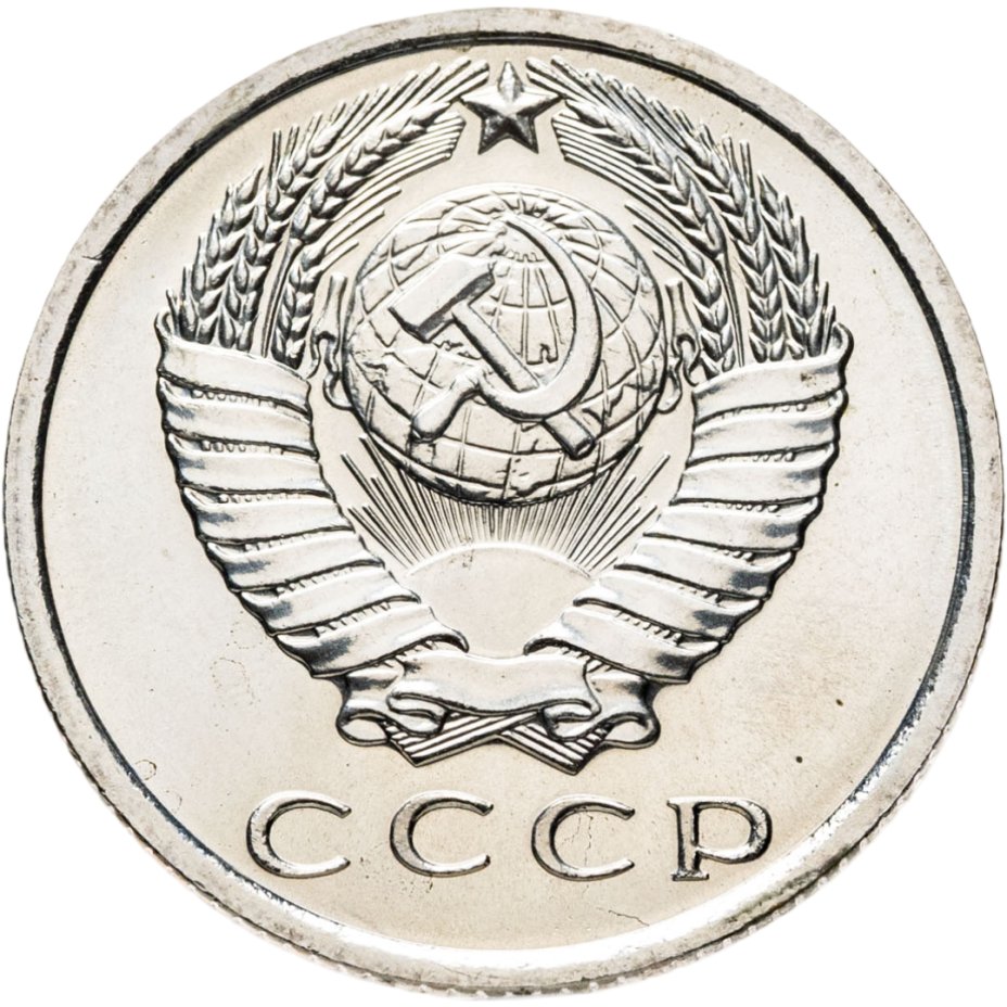 - Номинал над венком: по бокам колосья пшеницы, переходящие в дубовые ветви, которые держит ракушка. Такими монеты остаются до 1991 года, когда СССР распался.