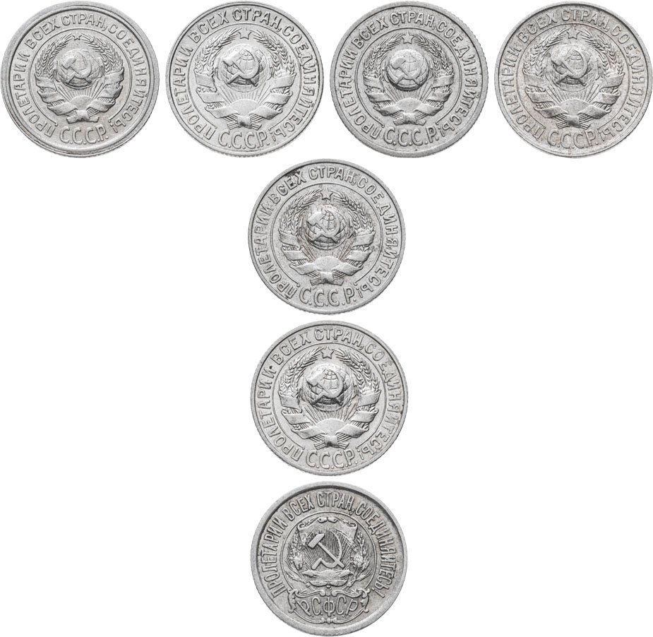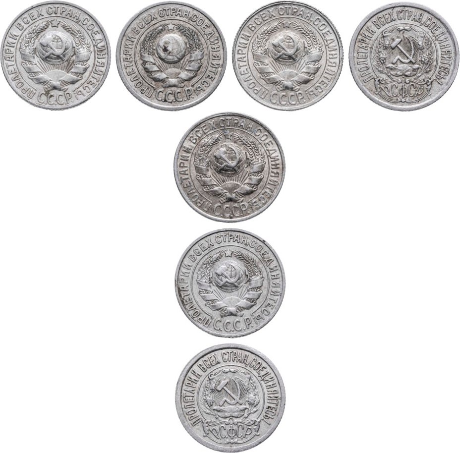 - Номинал в рамке из колосьев, чеканятся с 1924 года: 1, 2, 3, 5, 10, 15, 20 копеек, а также серебряный рубль.