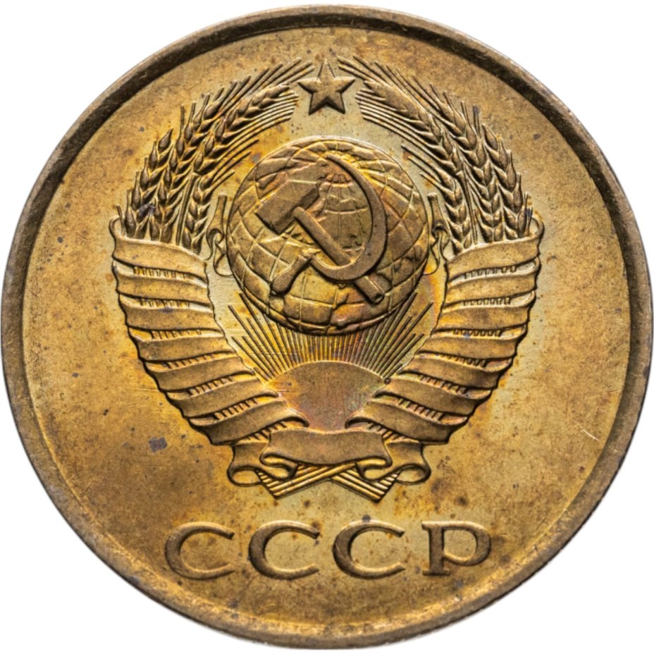 - Номинал над венком: по бокам колосья пшеницы, переходящие в дубовые ветви, которые держит ракушка. Такими монеты остаются до 1991 года, когда СССР распался.