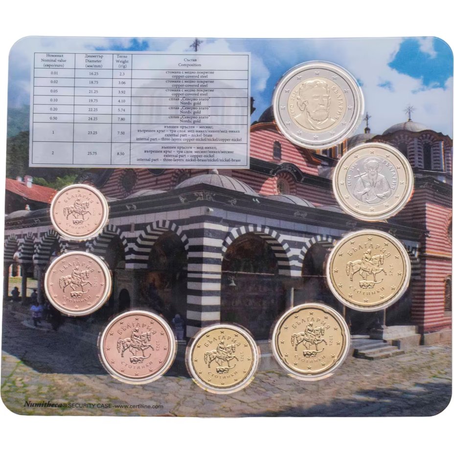 Собрания монет США включают в себя: 1,5, 10 центов (1 дайм), 25 центов (квотер), 1/2 доллара и 1 доллар. Также существуют наборы с памятными и юбилейными монетами. Наборы Евросоюза интересны биметаллическими евро.