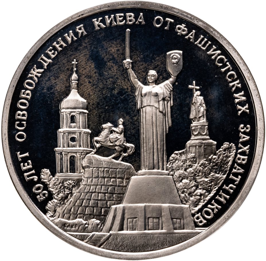 3 рубля 1993 ММД "50-летие освобождения Киева от фашистских захватчиков", в слабе Монетник.ру PF67