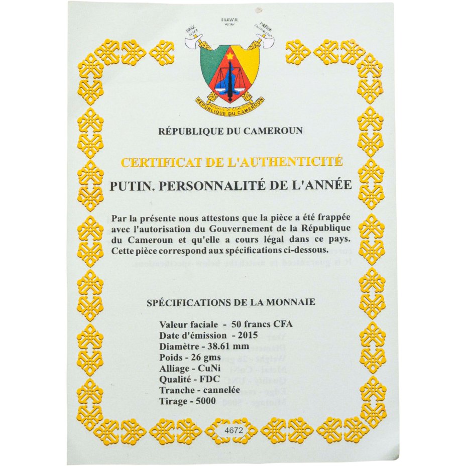 Первой официальной монетой, отчеканенной в честь действующего президента России В. В. Путина, стали 50 камерунских франков.