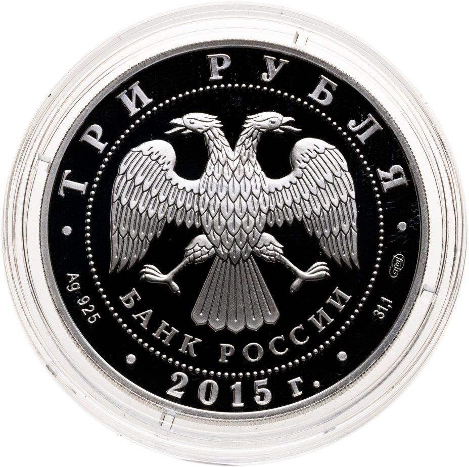 3 рубля 2015 СПМД Proof "Мечеть имени Ахмата Кадырова - Символы России"