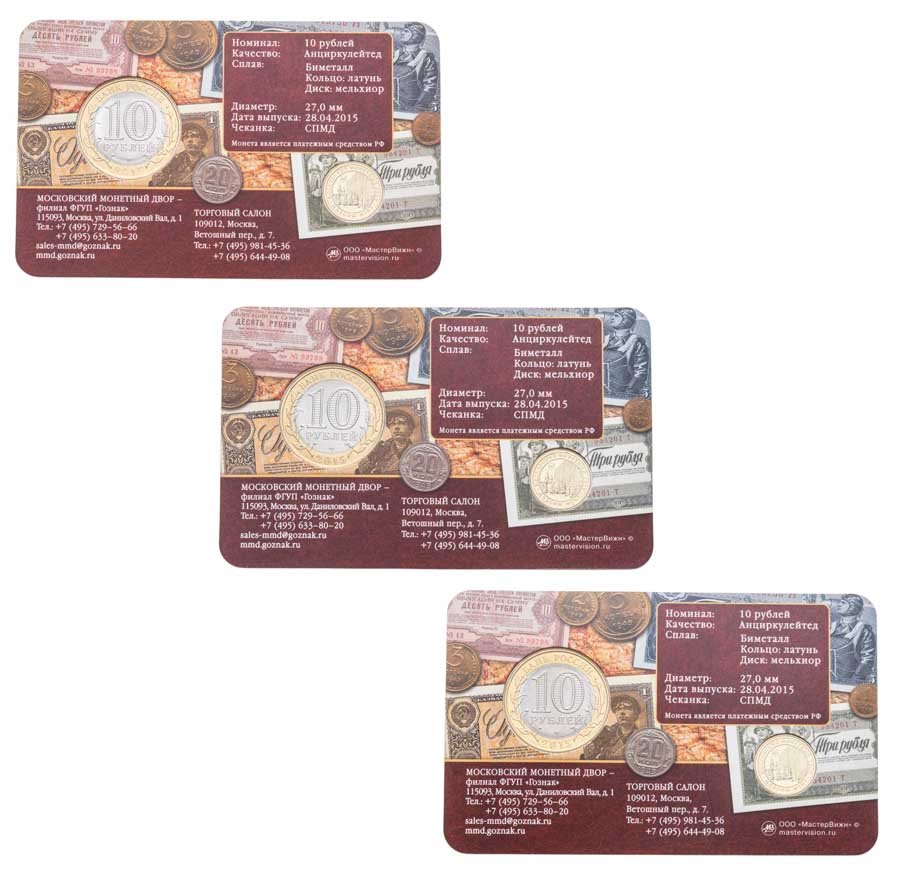 - Тираж: Монетный двор: Россия, Москва; Unc=5.000.000 шт.