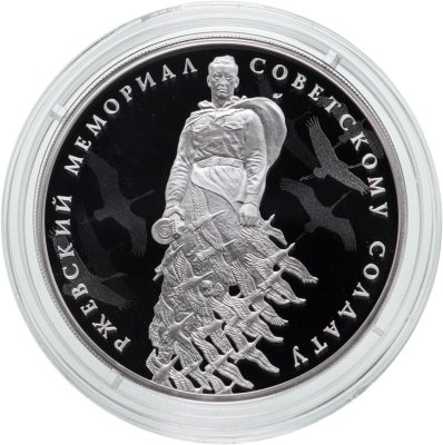 Банкнота и серебряная монета с изображением Ржевского мемориала