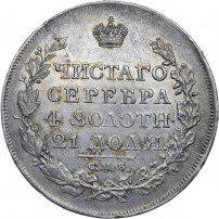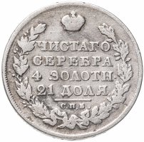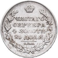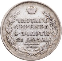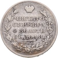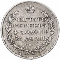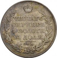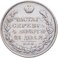 Монетная реформа 1810 года кардинально изменила медную линейку. Серебро тоже ожидали перемены. В монетный ряд вернулись 5 и 20 копеек, а на обороте крупных номиналов в центре стали указывать содержание чистого металла: «ЧИСТАГО СЕРЕБРА 4 ЗОЛОТН. 21 ДОЛЯ». Более информативной стала и вдавленная надпись на гурте: «СЕР. 83 1/3 ПРОБЫ 4 ЗОЛ. 82 14/25 ДОЛИ». При этом вес монеты остался прежним, а диаметр уменьшился до 35,5 мм. В каталогах рубли этого типа дополняют указанием «орёл с поднятыми крыльями», так как на золоте с 1817 года используется другой вариант герба – «орёл с опущенными крыльями» (или «масонский орёл»). За этот период известны три типа герба, различающиеся размером короны и скипетра, а также длиной хвоста орла. В коллекцию также включена монета, на гурте которой ошибочно указано «28 14/25» (вместо «82 14/25»).