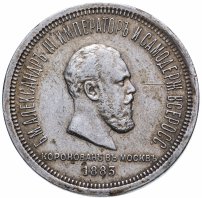 В нашу коллекцию 1 рубль 1883 года с обозначением «(А•Г)» не вошёл из-за большой редкости. По той же причине мы не включили в эту подборку монету с датой «1889», а также редчайшие портретные варианты (1886-й год с малой головой и позиции 1888-1894 гг. с большой головой). Нет здесь и удивительного «гибридного рубля», имеющего лицевую сторону от коронационной монеты, а оборотную – от экземпляра регулярного чекана. Эта монета известна всего в нескольких экземплярах и считается новодельной, то есть выпущенной позднее указанной на ней даты.