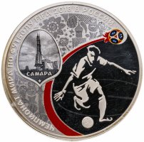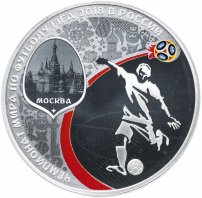 Первую серию из 6 серебряных монет 3 рубля FIFA 2018 выпустили в 2016 году: было отчеканено 4 вида монет, посвящённые городам, где планировалось проведение футбольных матчей в рамках Чемпионата, монета с изображением Кубка Чемпионата и монета с изображением Кубка конфедераций FIFA.