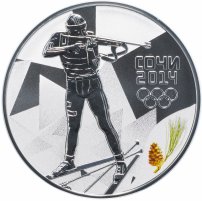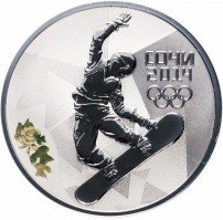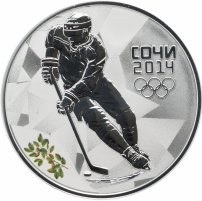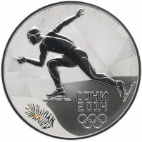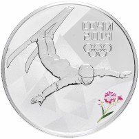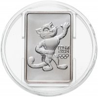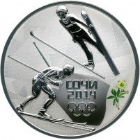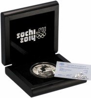 В 2011 году была отчеканена первая партия серебряных монет 3 рубля Сочи 2014 из 5 разновидностей – 1 прямоугольная с изображением леопарда и 4 круглой формы, посвящённые следующим видам спорта: