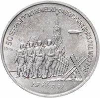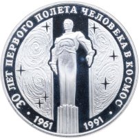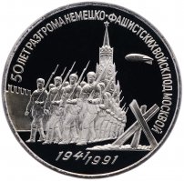 В последний год существования СССР было выпущено самое большое количество разновидностей юбилейных советских монет 3 рубля. В 1991 году было отчеканено два вида медно-никелевых в честь 50-летия разгрома немецко-фашистских войск под Москвой (2,2 миллиона экземпляров в обычном качестве чеканки и 300 тысяч в качестве Proof) и 4 вида серебряных: с изображением Большого театра и Триумфальной арки в Москве (по 40 тысяч экземпляров); в честь 250-летия открытия Русской Америки с изображением крепости Росс (25 тысяч экземпляров) и в честь 30-летия первого полёта человека в космос.