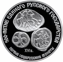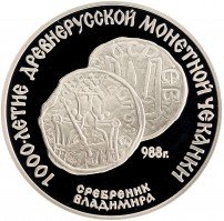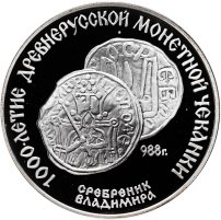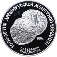 В 1988 году отчеканили две разновидности монет: с изображением Софийского собора в Киеве и в честь первой серебряной монеты, чеканившейся в Киевской Руси – сребреника. Эти монеты были выполнены из серебра 900 пробы тиражами по 35 тысяч экземпляров каждого вида.