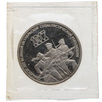 Юбилейные монеты 3 рубля начали выпускаться за несколько лет до распада СССР. В 1987 году, в честь 70-летия Великой Октябрьской социалистической революции было отчеканено 2,5 миллиона юбилейных монет из медно-никелевого сплава. 2,3 миллиона из них было выпущено в обычном качестве чеканки, 200 тысяч – в качестве Proof.
