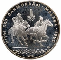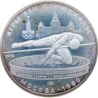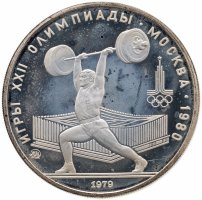 Внедрение новой технологии началось в 1976 году. Пройдя большим путём проб и ошибок (к примеру, первая партия оказалась забракована из-за плохой полировки заготовок), оба двора сумели отчеканить коллекционные монеты, ничем не хуже зарубежных аналогов. Олимпийское серебро в качестве «Proof» включает подборку из 28 позиций: по 14 монет достоинством 5 и 10 рублей. Серия «Географическая» представляет места проведения соревнований (5 рублей «Ленинград», «Киев», «Минск», «Таллин», а также 10 рублей «Москва» и «Карта СССР»). Остальные монеты нумизматы делят на две серии - «Народные виды спорта» и «Быстрее, выше, сильнее». Здесь границы весьма расплывчаты. Например, серию «Быстрее, выше, сильнее» часть коллекционеров формирует следующим образом: