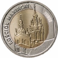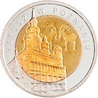 Так как монеты планировались для хождения в обороте, параметры для них идентичны стандартным 5 злотых регулярного чекана. При весе 6,54 грамма монета имеет диаметр 24 мм и толщину 2 мм. У монет медальное соотношение сторон (разворот аверса к реверсу 0°). Структура монет комбинированная (составная), биметаллическая. Внешнее кольцо сделано из светлого медно-никелевого сплава МН25 (мельхиор). Внутренняя вставка изготовлена из сплава CuAl6Ni2 жёлтого цвета (алюминиевая бронза). Оформление аверса в общих чертах повторяет лицевую сторону монеты регулярного чекана аналогичного номинала. Только вместо даты на кольце чеканят номинал, а год выпуска перенесли на вставку (для этого пришлось уменьшить изображение орла).