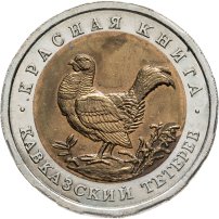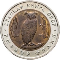 Первые монеты «Красная книга СССР» Государственный банк выпустил в 1991 году. Это была новая страница в отечественной нумизматике: впервые для памятной серии использовали биметалл - составные монеты, собранные из светлого медно-никелевого кольца и вставки из латуни золотистого цвета. Первыми на монетах оказались Рыбный филин и Винторогий козёл. Тираж каждой позиции составил 550 000 экземпляров.