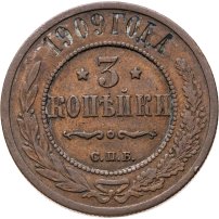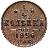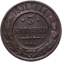 До 1915 года на монетах было указано обозначение Санкт-Петербургского монетного двора – буквы «С.П.Б.», с 1915 же года эта аббревиатура на монетах не фигурирует из-за переименования Санкт-Петербурга в Петроград. Следует знать, что в 1896-1898 гг. заказ на чеканку медных монет Российской империи выполнял монетный двор Бирмингема, а в 1899-1901 гг. их чеканили в Санкт-Петербурге, но не на Государственном монетном дворе, а на заводе Розенкранца. И в том, и в другом случае обозначение на реверсе оставлялось прежним - «С.П.Б.»