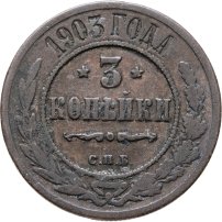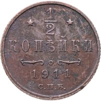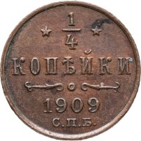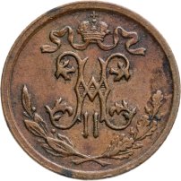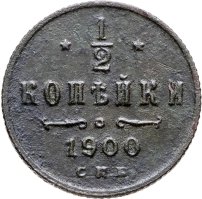Медные монеты Николая II представлены следующими номиналами: четверть и половина копейки, 1, 2, 3 и 5 копеек.