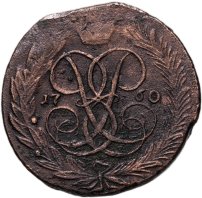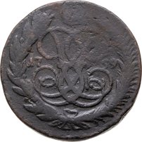 1757 год – период пробных монет, когда на аверсе сохранившихся раритетов можно было увидеть не только якоря (герб столицы империи – Санкт-Петербурга) или привычного для остальных номиналов Георгия Победоносца (герб Москвы), но и двух соболей с луком и стрелами (герб царства Сибирского). Монеты утверждённого общероссийского образца с датой «1757» известны только в качестве новоделов, поэтому в данную коллекцию не включены. Массовую чеканку, начавшуюся в 1758 году, обеспечили два двора: Красный (буквы ММ – «Московская монета») и Екатеринбургский (без обозначения). Согласно каталогам, московские монеты считаются более редкими.