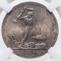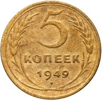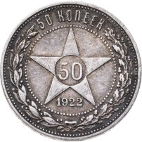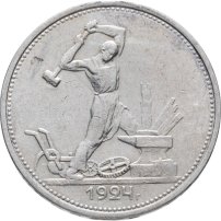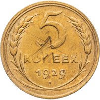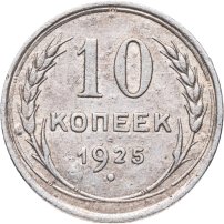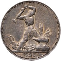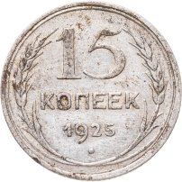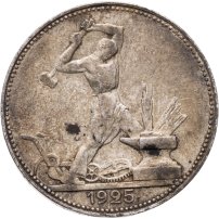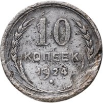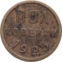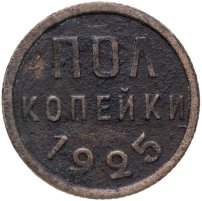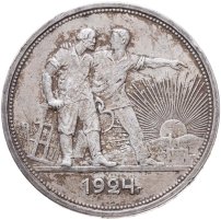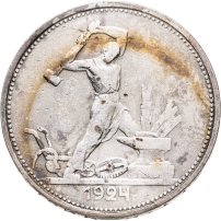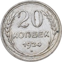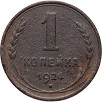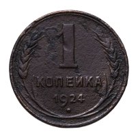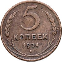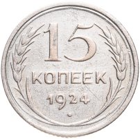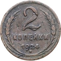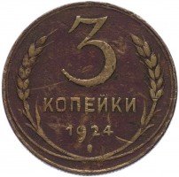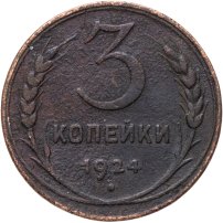 С 1924 года начался выпуск монет уже с символикой СССР. К серебряным монетам номиналами 10, 15, 20, 50 копеек (которые с 1924 года стали именоваться «полтинниками» - этот номинал выпускался до 1927 года) и 1 рубль (серебряный оборотный рубль с символикой СССР чеканился только в 1924 году), добавились медные монеты номиналами полкопейки, 1, 2, 3 и 5 копеек. Наследие царского режима – монеты полкопейки выпускались в 1925, 1926 и 1928 гг; 1 и 2 копейки из меди чеканили в 1924 и 1925 гг, а медные 3 и 5 копеек датируются только 1924 годом.