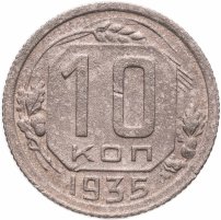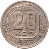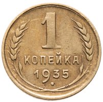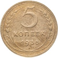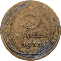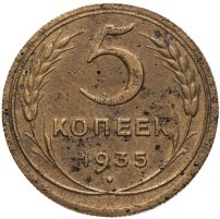 С 1935 года рисунок на оставшихся номиналах (1, 2, 3, 5, 10, 15 и 20 копеек) был изменён: было сокращено количество мелких деталей, был убран интернациональный коммунистический лозунг «Пролетарии всех стран, соединяйтесь». Из-за изменения количества республик в составе Советского Союза неоднократно менялось и количество лент на советском гербе: их было 7, 11, 16, 15. Уменьшение количества лент с 16 до 15 было связано с тем, что Карело-Финская ССР в 1956 году была включена в состав РСФСР.