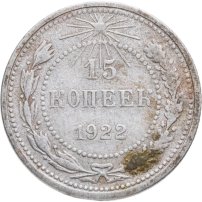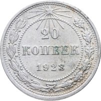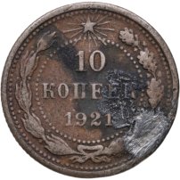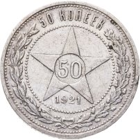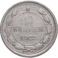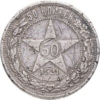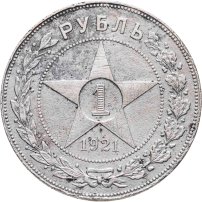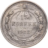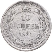 В 1921 году, когда страна называлась РСФСР, были отчеканены первые монеты молодой советской республики: изготовленные из серебра 500-й пробы 10, 15 и 20 копеек, и из более высокопробного (900 пробы) серебра 50 копеек и рубль. Чеканка монет 10, 15 и 20 копеек с гербом РСФСР продолжалась до 1923 года; 50 копеек и рубль с гербом РСФСР – до 1922 года. Также в 1923 году были отчеканены золотые десятирублёвые монеты с гербом РСФСР – червонцы.