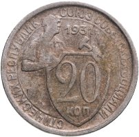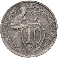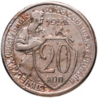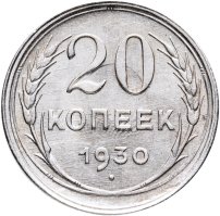 С 1926 года номиналы 1, 2, 3 и 5 копеек начали чеканить из бронзы, а с 1931 года, в целях экономии серебра, номиналы 10, 15 и 20 копеек начали изготавливать из медно-никелевого сплава.
