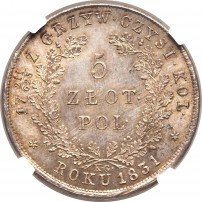 Одним из символов неожиданно упавшей в руки свободы стала чеканка собственных денег. По распоряжению Санкт-Петербурга на аверсе крупных номиналов изображали профиль Александра I. На лицевой стороне мелких номиналов и обороте некоторых из крупных чеканили двуглавого орла с гербом Царства Польского на груди. Теперь же, при сохранении прочих параметров, оформление монет существенно поменялось. Вместо символов имперской России появился соединенный герб царства Польского и Великого княжества Литовского, увенчанный королевской короной. С февраля по сентябрь 1831 года массово чеканились четыре номинала: