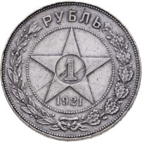 Рублёвое серебро с атрибутами народовластия – это прямое наследство от аналогичного номинала дореволюционных времён. Стандарт в 20 грамм общего веса (из них – 18 грамм чистого металла) при диаметре 33,65 мм ввели в 1886 году (период правления Александра III). До самого прекращения чеканки царских рублей их лицевую сторону украшал портрет императора, а оборот – герб Российской империи в виде двуглавого орла. При возобновлении их выпуска в конце 1921 года решили оставил старые стандарты (в том числе, 900-ю пробу металла), несущественно увеличив диаметр до 35,5 мм. Но теперь вместо двуглавого орла солнце лучами согревало серп и молот (символы крестьянства и рабочего класса), обрамлённые пшеничными колосьями.