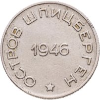 Выпуск 1946 года включает четыре номинала, из которых 10 и 15 копеек выполнены из алюминиевой бронзы, а 20 и 50 копеек - из медно-никелевого сплава. Однако коллекционеры включают в экспозицию два «шпицбергеновских» полтинника: стандартный и штемпель от 10 копеек (большая звезда и меньший размер цифры «6» в дате). Увозить боны на материк воспрещалось, но некоторое количество монет всё равно было вывезено случайно или в качестве сувенира.