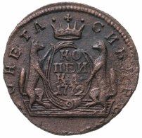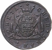 Начало производства «сибирской» монеты регламентировали два документа 1763 года. Первым был февральский запрос Кабинета её Императорского Величества о возможности выпуска монеты из накопившихся запасов меди, добытой из Колыванских рудников. Вторым стал ноябрьский Указ Екатерины II о чеканке на новом Сузунском монетном дворе особых медных денег по 25-рублёвой стопе (сумма из пуда меди). Столь удивительное значение медной стопы обусловили примеси золота и серебра, остававшиеся в колыванской меди после её очистки.