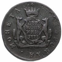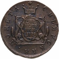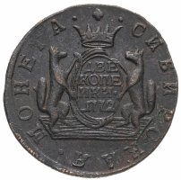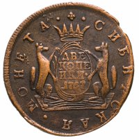 2 копейки – номинал, открывающий старшую группу сибирского монетного ряда. В отличие от младших номиналов, изначально имевших шнуровидный гурт, на эти монеты накатывали обозначение «КОЛЫВАНСКАЯ МЕДЬ», слова которого разделял растительный узор. Эта операция сильно усложняла производство и замедляло выпуск монет, которые в первые годы требовались в большом объёме. В результате уже в 1767 году оформление гурта вместо надписи сменили на более простой «шнур» с наклоном вправо, а буквы «К» и «М» оказались на лицевой стороне под екатерининским вензелем. Различия в гуртовом оформлении обеспечили две разновидности для сибирских двухкопеечных монет 1767 года. Экземпляры Сузунского двора с другими датами имеют единственную каталожную позицию (если не брать в расчёт новоделы).