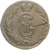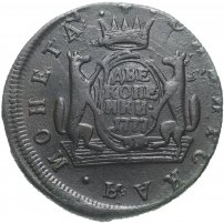Уже в ноябре Екатерина II подписывает Указ, что вся Сибирская губерния от города Тары до Камчатки для расчётов будет использовать особые монеты, чеканенные по 25-рублёвой стопе. На их лицевой стороне предусматривался вензель, отличный от общероссийской монеты, а оборот занимало подобие герба Царства Сибирского – два соболя, держащие щит с указанием номинала (за исключением полушки, где ограничились щитом без соболей). В 1763-1764 гг. производится чеканка пробных монет (эксперты утверждают, что её провели в Санкт-Петербурге), но летом 1765 года почти готовый Сузунский двор полностью сгорел. Из Санкт-Петербурга для ускорения запуска чеканки прибывает целая бригада мастеров, и в июне 1766 года из заново отстроенного двора в Сузуне по два образца каждого из шести номиналов отбывают для утверждения в столицу. Долгий путь туда и обратно привёл к тому, что в 1766 году монет успели начеканить не так уж много, и эта дата для сибирской меди считается редкой.