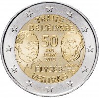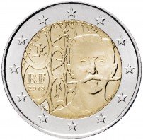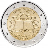 Во Франции первые юбилейные монеты 2 евро были отчеканены в 2007 году. В честь пятидесятилетия подписания Францией, ФРГ, Италией, Бельгией, Нидерландами и Герцогством Люксембург договора «о ликвидации преград на пути свободного передвижения людей, товаров, услуг и капитала» (его называют «Римским договором» - именно он стал предтечей для создания единого мощного экономического и политического пространства – Евросоюза) было выпущено 9,4 миллиона юбилейных монет этого номинала.