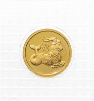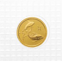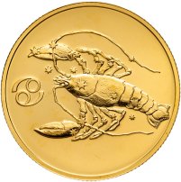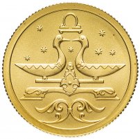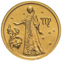 Банк России с момента начала эмиссии коллекционных монет из золота придавал каждому выпуску вполне серьёзную тему, отражая на их реверсе знаковые мероприятия года, а также юбилеи событий или личностей, оставивших важный след в истории страны. Зодиакальная тема – пожалуй, первое отступление в сторону чего-то эфемерного, но пользующегося высокой популярностью у масс. В 2002 году в золоте появились шесть монет достоинством 25 рублей (999-я проба, 3,11 грамма чистого металла или десятая часть тройской унции). В этом выпуске представлены «Лев», «Дева», «Весы», «Скорпион», «Стрелец» и «Козерог».
