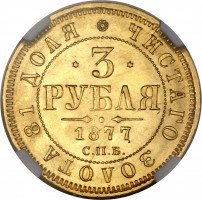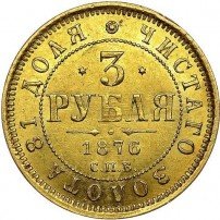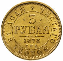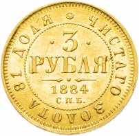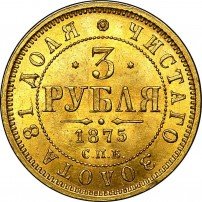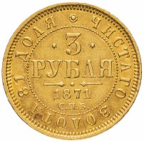 Общеимперские золотые монеты номиналом 3 рубля начали чеканить при Александре Втором-Освободителе. Причиной выпуска золотых монет этого номинала стала довольно интересная ситуация: ещё с XVIII века в Российской империи чеканили нидерландские дукаты (в нумизматической среде их также называют «голландскими червонцами»), которые предназначались для использования в финансовых операциях на внешнем рынке, однако из-за крупных тиражей участвовали они в обороте и внутри страны. В 1849 году чеканка нидерландских дукатов в стране, где они официально были национальной валютой, был прекращён, в Российской империи же их продолжили выпускать, указывая последний год, в который они чеканились в Нидерландах. В 1867 году, когда Нидерланды предъявили России официальные претензии, чеканка этих монет была прекращена, однако потребность в монетах с такой весовой нормой золота осталась. Так и появились золотые монеты 3 рубля.