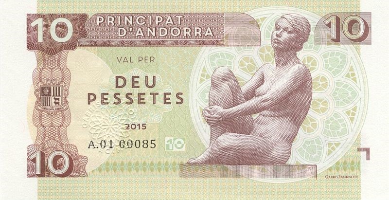 Банкнота достоинством десять песет, выпущенная Генеральным советом Андорры