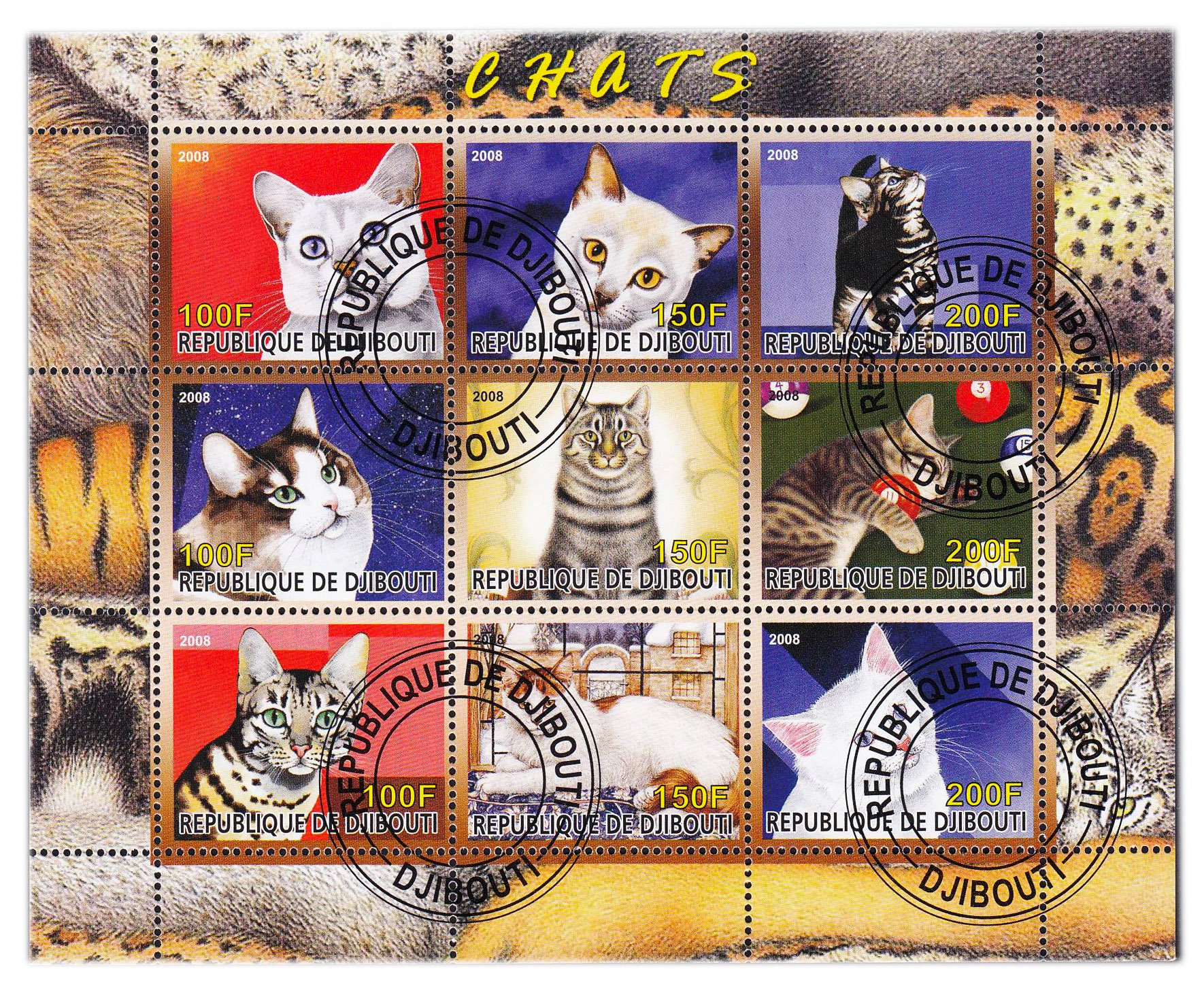 Купить Джибути марки  квартблок "Коты и кошки" 2008