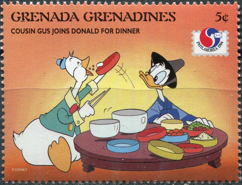 Купить Гренада Гренадины Почтовая марка  1994 "Кузен Гас присоединяется к Дональду за ужином"