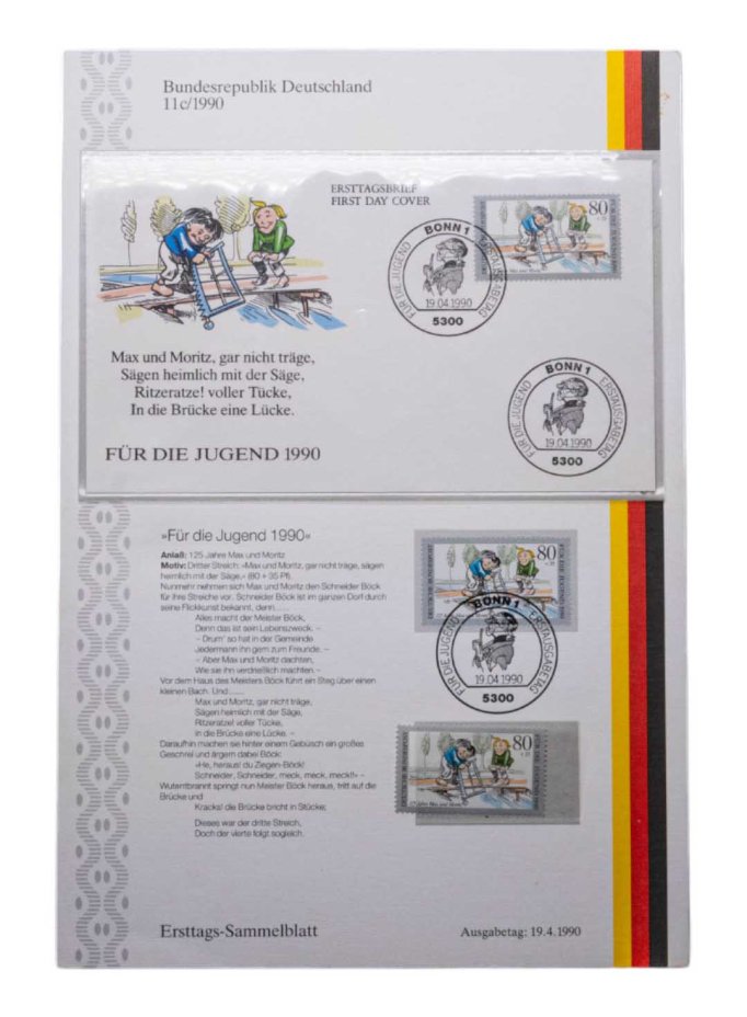Купить Германия ФРГ марки и конверт "Для молодежи" 1990