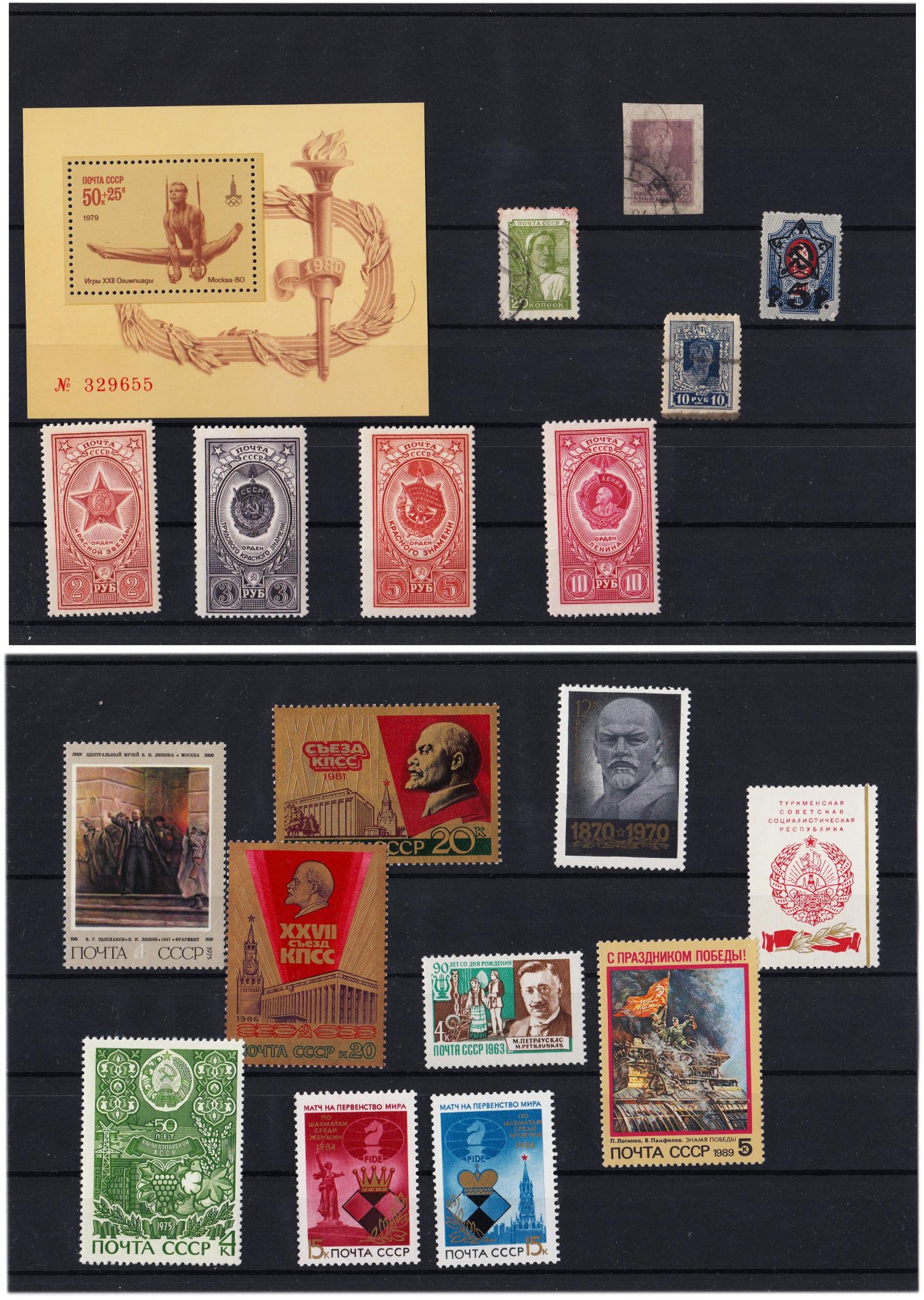 Набор марок 1922-1989 "Стандарт СССР, Ленин и др." (18 марок + Почтовый блок)
