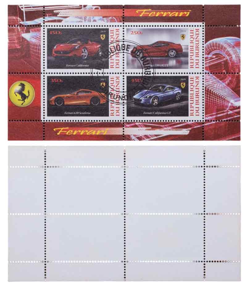 Купить Бурунди марки квартблок "Феррари. Автомобили. Гонки" 150, 250, 350, 450 франков 2009