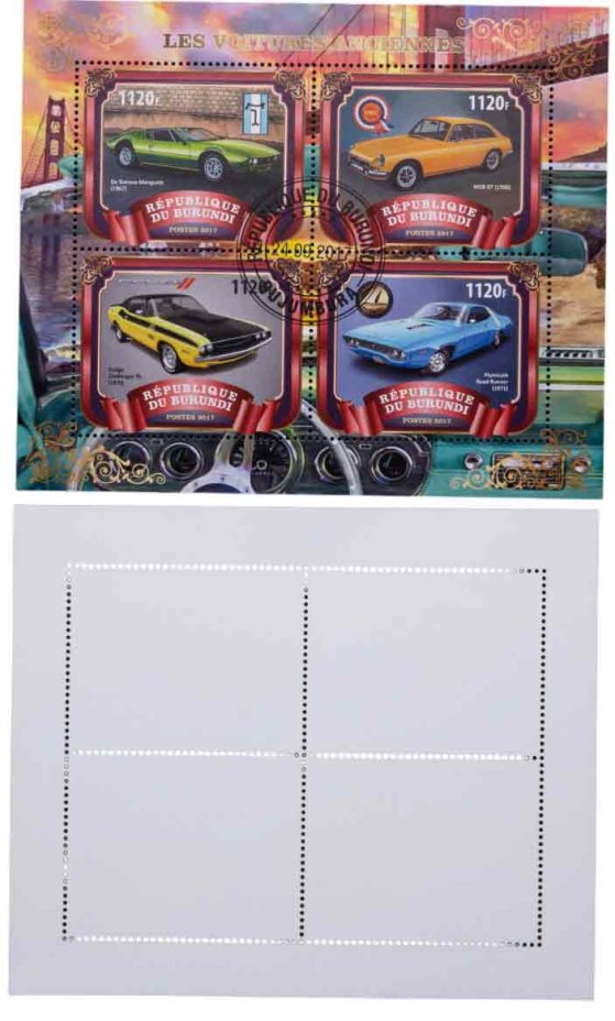 Бурунди марки квартблок "Автомобили. Машины. Ретро" 1120 франков 2017