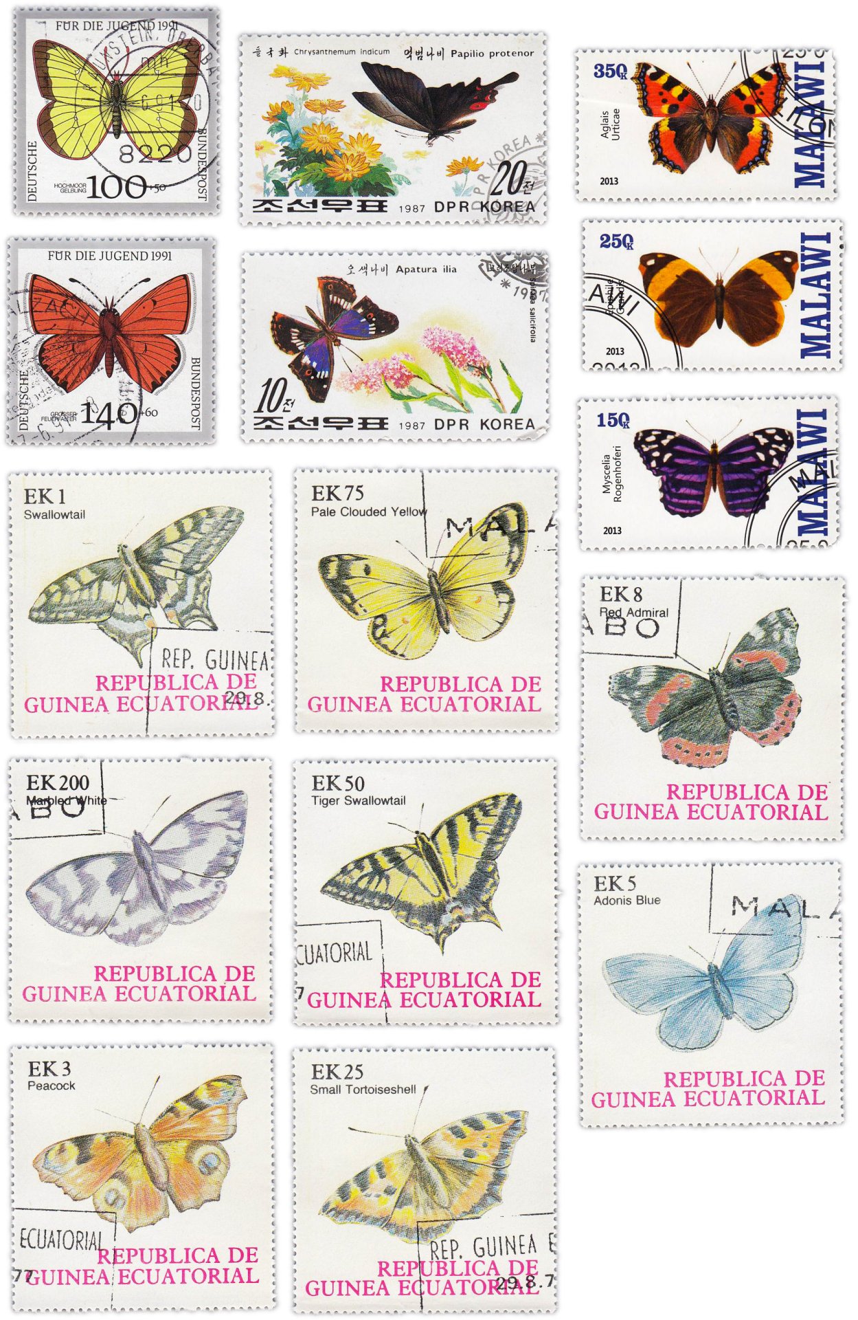 Набор из 15 марок "Фауна. Насекомые. Бабочки"