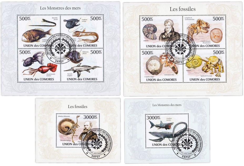 Купить Коморы набор из 3 квартблоков "Флора и Фауна. Рыбы. Морские жители"